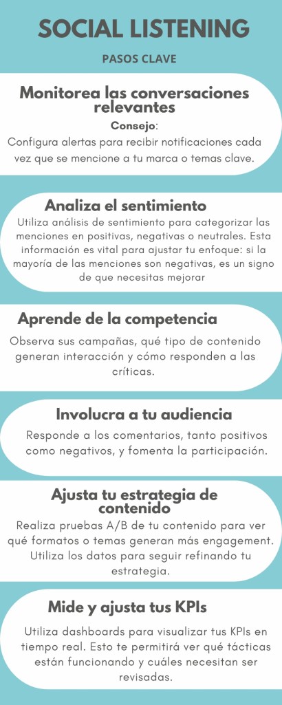 No solo se trata de publicar contenido atractivo; también es fundamental escuchar lo que se dice sobre tu marca, tus competidores y el sector en general.
