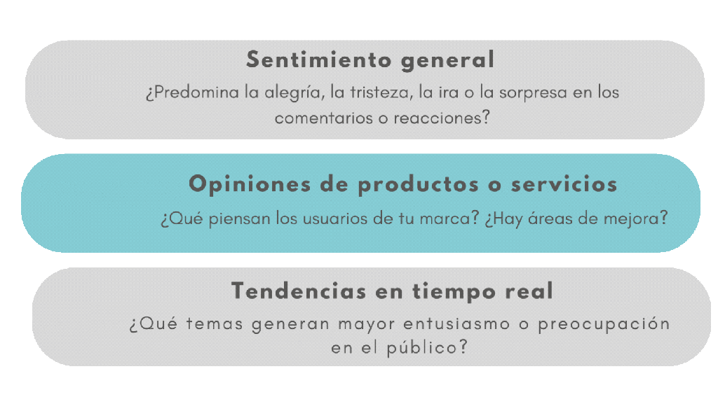 Estas herramientas analizan información en línea y extraen conclusiones sobre la percepción del público. Descifran la emoción detrás de cada «me gusta», cada publicación «guardada o compartida» y cada comentario, permitiéndonos entender: